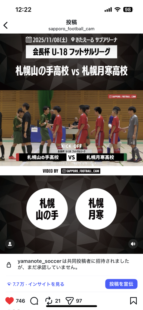 同じ日に、高校サッカー選手権の北海道大会決勝が行われていたので、たまたまおススメに表示された、高校生やその家族に見てもらえたのだと思います。