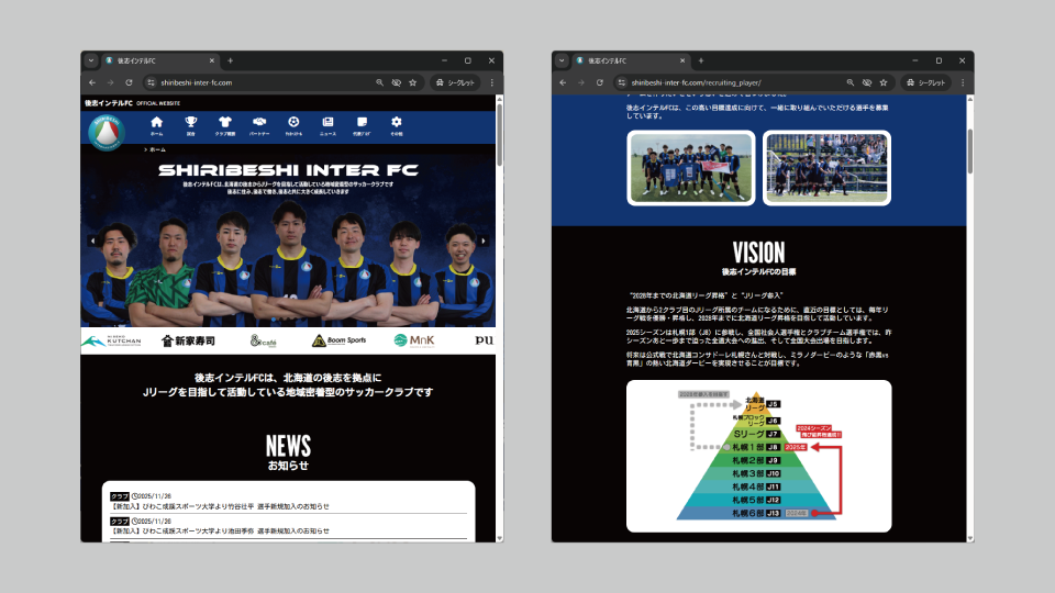 しかし、どこかサッカーに未練があったのか、どうしても諦めきれず趣味で活動をスタートして、社会人サッカーやフットサルの試合の撮影や編集、WEBサイトの制作などをやっています。